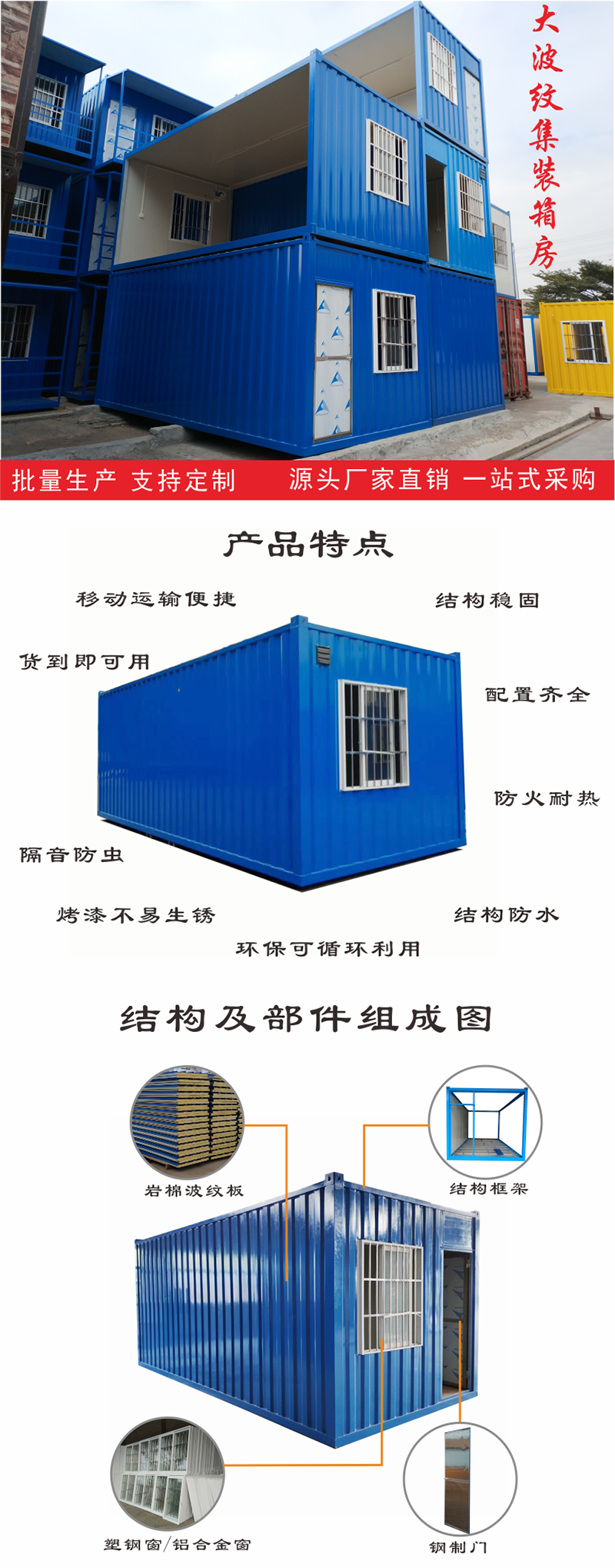 主營生產(chǎn):活動(dòng)板房、住人集裝箱房、鋼結(jié)構(gòu)廠房、輕鋼組合房、輕鋼別墅、箱式活動(dòng)房、非標(biāo)訂制活動(dòng)板房、鋼結(jié)構(gòu)大棚、工地圍蔽圍擋圍墻、室內(nèi)凈化隔墻、移動(dòng)廁所、保安亭崗?fù)さ葮I(yè)務(wù)。
